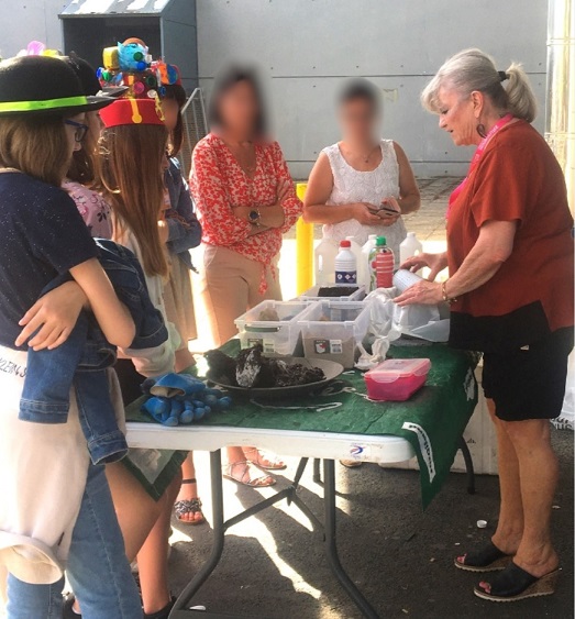 – Matériel et ingrédients permettant à l’animatrice de fabriquer une « comète artificielle ».