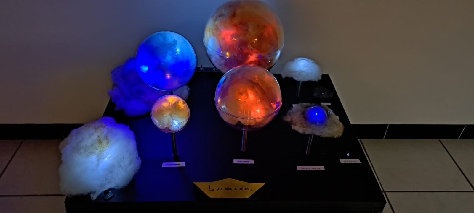 – Une maquette permettant de visualiser chacune des étapes de la vie d’une petite ou d’une grosse étoile depuis la nébuleuse d’origine jusqu’à sa mort,